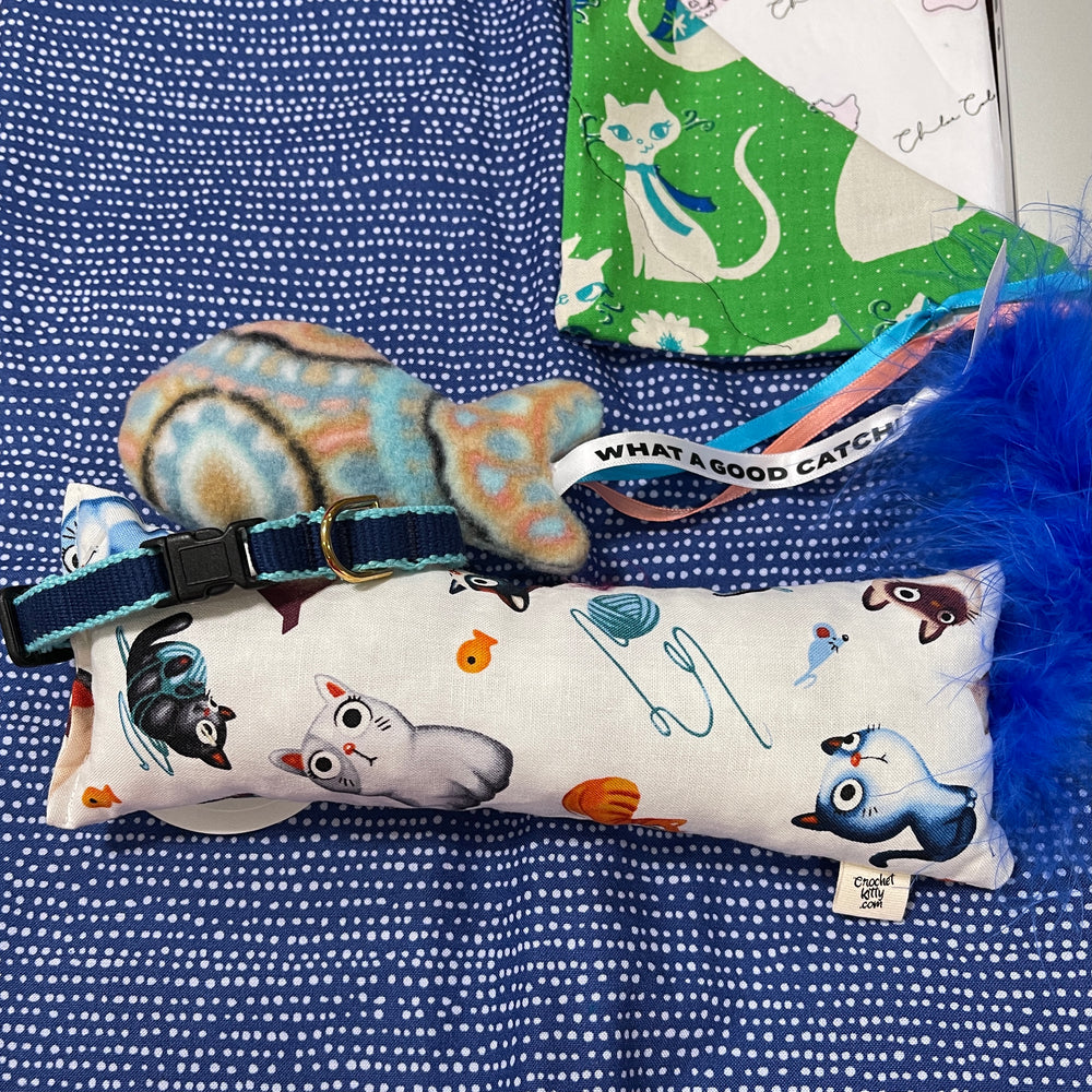 4 Piece Blue Cat Gift Box with 19 x 17 Catnip Mat & Collar