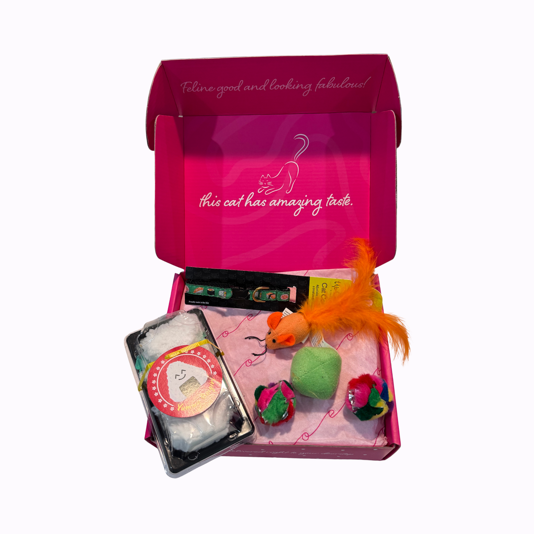 8 Piece Rescue Cat Collar + Catnip Collection Cat Box