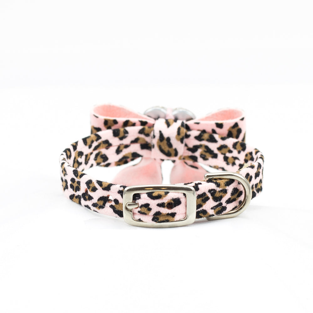 The romantic Tail Bow Heart is oh so sweet in Cheetah Couture, and is centered with a heart shaped genuine crystal. This 1/2 inch collar is made from genuine commercial upholstery grade Ultrasuede® fabric that we import from Japan. Manufactured in the USA, this collar is breathable, washable and colorfast. We recommend the dog should always be walked with a harness. Our collars are designed for ID tags, charms and for decoration. They are not designed for pulling dogs.
