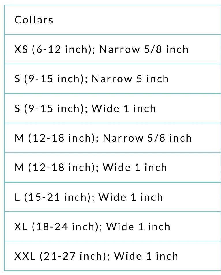 XS (6-12 inch); Narrow 5/8 inch |