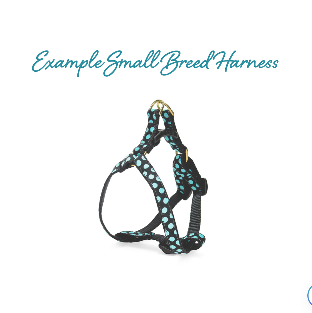 These harnesses are specially designed for puppies and small breeds 10 pounds and under - as a lighter, more comfortable option. They are adjustable three ways to perfectly suit your dog's shape and size. Made with durable webbing and perfectly proportioned hardware, small breed harnesses are designed for maximum comfort.