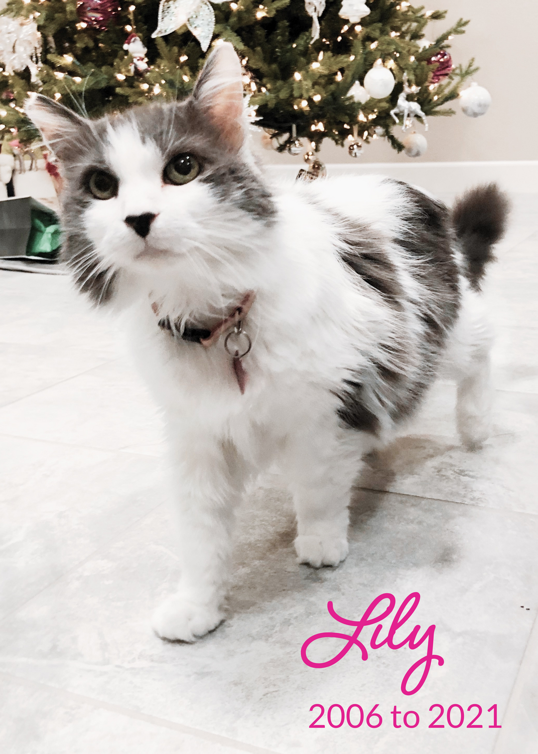 I rescued Lily with Frankie, Fiona and Freesia. She lived outside with Frankie, but we made her an indoor cat. Frankie finally came inside to be with his bff too. She was a sweet, smart & feisty. I would call her name when she was outside, and she would come running and leap into my arms. She crossed rainbow bridge with Chloe and Fiona. 2006- 08/27/21